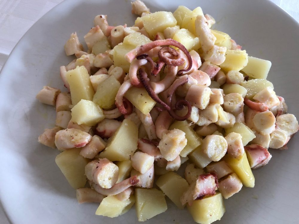 Qui a Nord, a meno che non sia fritto o alla griglia, il polpo lo facciamo senza ventose, beh se vi siete fatti una bella risata vi capisco e vi segnalo che la patata viene comunque avvolta da una morsa tentacolare, l’abbraccio però, concordo con voi, è diverso, direi più freddo-milanese che campano-passionale.