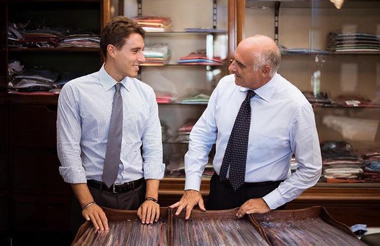 La bottega nacque su uno dei più bei lungomare d’Italia, il Lungomare Caracciolo, davanti al quale piacevolmente passeggiava l’alta società napoletana. Un percorso che Eugenio Marinella iniziò nel 1914 e che immediatamente vide una forte crescita grazie all’esclusiva importazione di capi ed accessori inglesi che avevano reso la bottega un piccolo angolo d’Inghilterra nel cuore di Napoli. Una corrispondenza di amorosi sensi della platea napoletana con il marchio E. Marinella, che vive tutt’ora un periodo intenso e denso di soddisfazioni professionali e familiari. Alessandro Marinella, il figlio del signor Maurizio, ha da qualche anno intrapreso il suo ingresso nell’attività, nella storia familiare, portando con se, la sua educazione, il suo sorriso e la sua competenza. Alessandro ha una grande storia da raccontare, la gioia nel sentire il fregio più che il peso di trasportare il brand nel secolo dei social media e soprattutto di lavorare fianco a fianco col papà. Osservarli rapportarsi l’un con l’altro è quasi come osservare una reazione chimica, molecole che lavorano ad un unico obiettivo: soddisfare la clientela, trasmettendo il messaggio di sartorialità, artigianalità che le cravatte ed i prodotti E. Marinella rappresentano, un pezzo di Napoli nel mondo. Un insieme di valori e di artigianalità che speriamo apporterà anche nel mondo food.