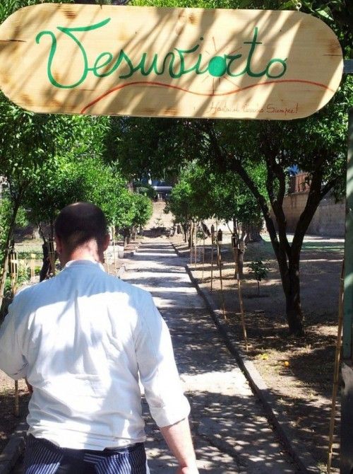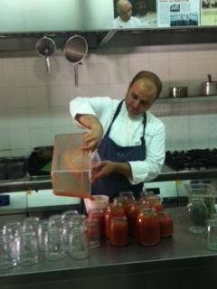 Così ci siamo recati da Eduardo Estatico, cuoco del ristorante C&D di Portici, per imparare a fare i pomodorini del piennolo del Vesuvio a pacchetella in conserva ed anche in passata. Proprio quest’anno Eduardo ha dato vita al Vesuviorto, un fornitissimo orto vesuviano all’interno del vecchio giardino del ristorante, dal quale ricava molti ortaggi, verdure ed erbe aromatiche che utilizza poi nelle sue preparazioni.