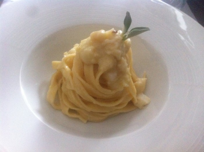 Lo dico subito: mi sono piaciuti, giovani, perbene pieni di entusiasmo. Il locale è pulito, accogliente con un bellissimo giardino di erbe officinali e spezie da usare nei piatti. La cucina di questo giovane chef, è mediterranea, con una leggera rivisitazione. Sapori netti, qualcosina ancora da registrare come un uso più attento di olio e aceto, ma mi ha convinto. Buono infatti il tortino di patate su crema di pane, buonissime le tagliatelle con ceci e baccalà. Perfetta la sfoglia tirata a mano da Raffaele, callosa e cotta a puntino, gustoso ed equilibrato il baccalà che troppo spesso nei ristoranti ma pure a casa, pecca di sapidità. E’ scattato un applauso.