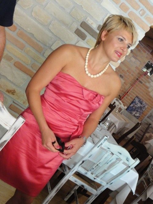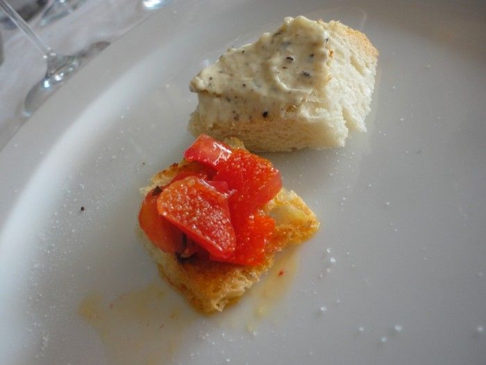 Per la cronaca, il cicisbeo di turno, non riesce a fare a meno di notare il pendant di colore del telefonino di Jenny col suo vestito ;-))…Ci sediamo e ci viene offerto un Franciacorta per accompagnare le bruschettine al pomodoro e al tartufo di Bagnoli.