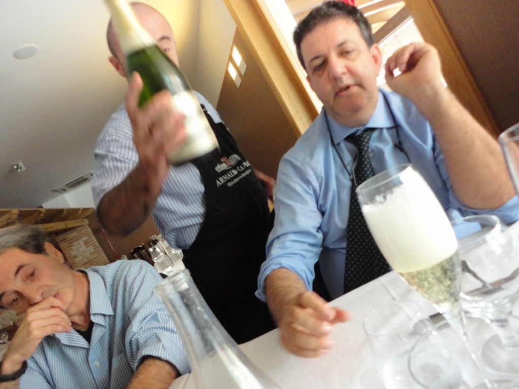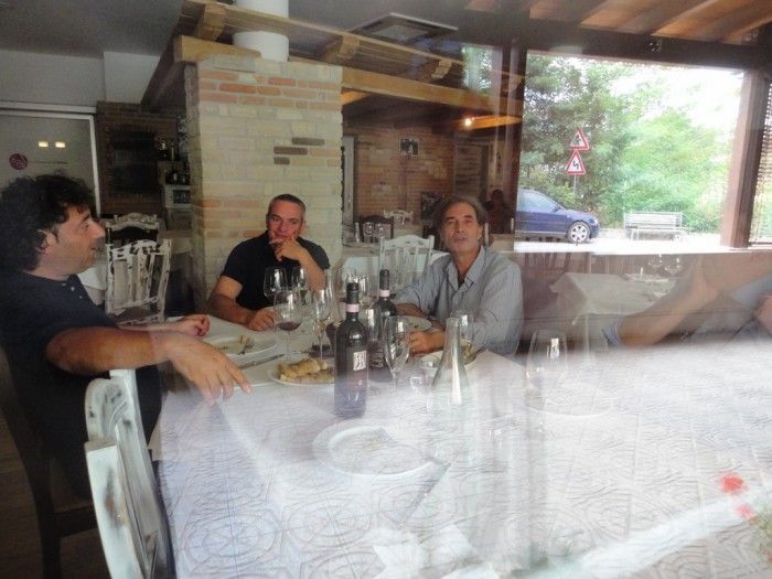 Siamo in cinque. Il “Pigna relatore ottimizzante”, il “Bell’Annibale”(sulla sua pistola ormai le tacche di vittime del gentil sesso …non si contano più), del “Mattino di Napoli”, moderatore del convegno, ” la “bella faccia di Pasqua” di Alessandro Barletta di Slow Food Taurasi insieme al suo collega Pierluigi D’Ambrosio, curatori delle degustazioni successve al convegno, ed il sottoscritto.