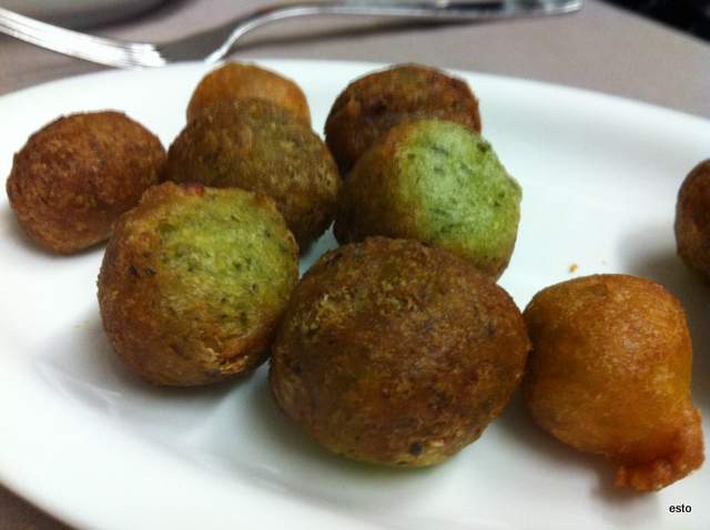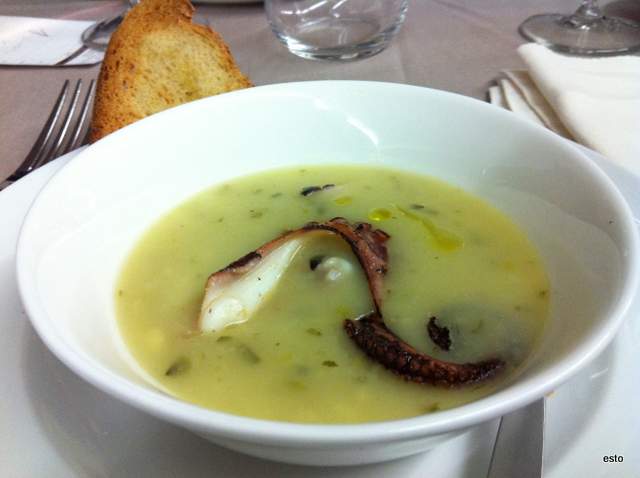 Il benvenuto è una crema di patate con il polpo brasato. Gustosa e simpatica soprattutto per la versione salentina delle felafel, queste saporite polpettine di verdure anziché di ceci.
