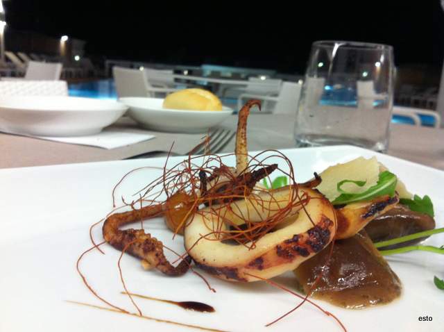 La tagliata di calamaro grigliato con i funghi riporta al di qua dove, sembra strano, i funghi esistono. Questi però stavano in dispensa da sottoli e son buoni. Peccato, perciò, non essere capitati nel tempo della loro raccolta.