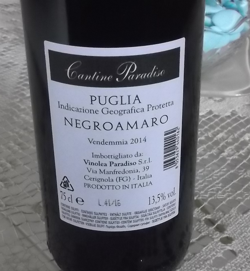 Controetichetta Negroamaro Posta Piana Puglia Igp 2014 Cantine Paradiso