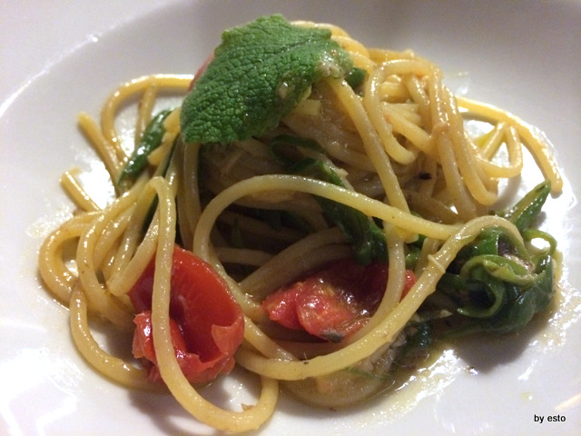 Il resto lo fanno gli spaghetti ai peperoncini verdi croccanti, piacevolmente amaricanti, non a caso qualcuno li chiama friarielli, fra i dolci pomodorini puteolani.