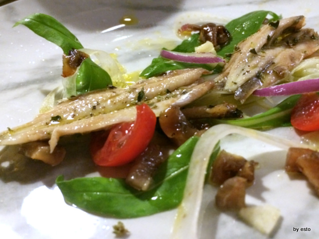 Ed infatti le alici marinate al limone com quelle disperse tra i sapori dell’orto giungono rapidamente per avviare le papille.