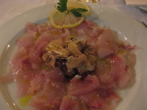 Quando si ha bisogno di un medico per qualche sintomo che ci preoccupa profondamente, ci si affida a qualcuno del quale abbiamo la massima fiducia, ma se si ha voglia di mangiare pesce fresco del Mediterraneo, pescato in giornata, bisogna affidarsi alle mani di Gennaro Bisci, chef e patròn del ristorante Dal Tarantino. A Pozzuoli lo chiamano ‘o giapponese, perché la sua specialità è il pesce crudo o appena scottato, un tipo di preparazione per la quale è indispensabile un prodotto fresco e di alta qualità. Quando si viene da Gennaro bisogna farlo in totale fiducia, lasciarsi consigliare e non pretendere un menù sul quale scegliere i piatti da degustare considerando il fatto chequando i pescatori escono in mare non è che si approvvigionano al supermercato e trovando tutto ciò che hanno in lista, sì hanno molta importanza esperienza e professionalità, ma sono comunque determinanti i fattori meteorologici ed il fato del momento che ha suggerito ai pesci di essere in questo o quell’altro posto. Dal 1995 di buon mattino Gennaro si reca al porto di Pozzuoli per acquistare direttamente dai pescherecci la sua merce, preferendo il pescato del golfo di Napoli, quindi ricciole, gamberi e triglie con i baffi della secca delle Formiche di Ischia, le aragoste corallo della secca di Malena, gli astici bluastri qui detti elefanti, lo scorfano che i puteolani chiamano o’ capone per la testa grossa, pescato tra i 40 ed i 50 mt. di profondità con le reti “di posta”, lucerne, lampuga, orata locale detta ‘a padrona e tanti frutti di mare, taratufi, vongole veraci, lupini, ostriche, cozze,, sconcigli, lupini, telline, una infinità.