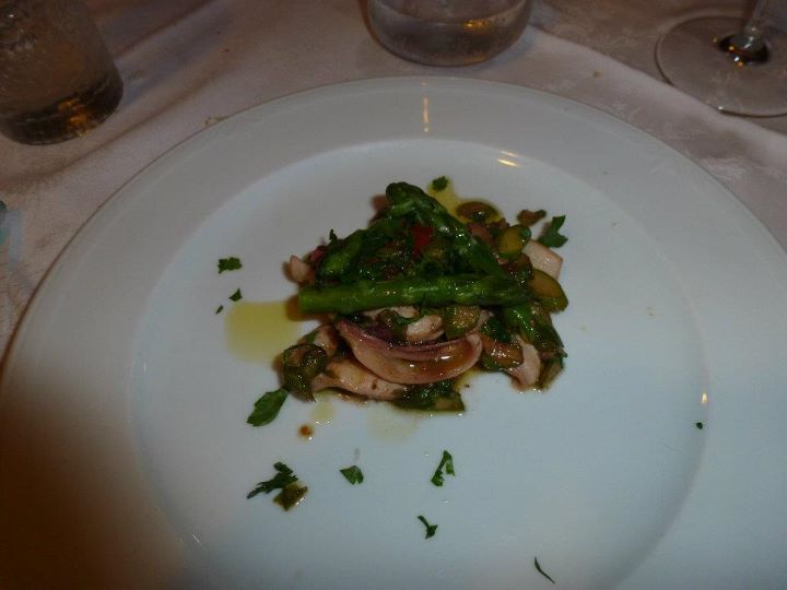 Ancora, un misto orto e mare a km zero: calamari in umido con asparagi selvatici;