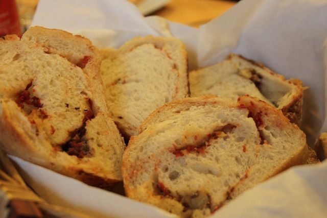 Già i pani sono un invito all’assaggio: con il pomodoro e l’origano, con le noci, con la ventresca.
