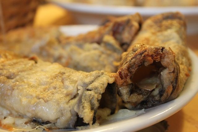 E gli involtini di melanzana indorata e fritta ripieni di fiordilatte.