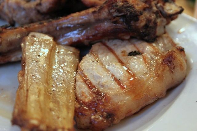 Poi il girello di maiale avvolto su se stesso con il rosmarino e l’uvetta.