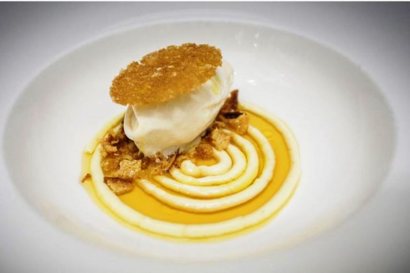 Il fascino della Costa Azzurra, un ristorante con una vista affascinante, talento e personalità, queste le premesse. Le acidità naturali, quelle mediterranee e quelle orientali, le note amaricanti mai spinte all’estremo, questi invece i tratti salienti del suo stile. Come filo conduttore della cucina di Mauro una sensibilità particolare nel trattare e rispettare la materia. Dolce non dolce, per la crema al caffè di patata viola e spuma di miele, tanta personalità e leggerezza per una chiusura che non appesantisce, senza perdere la golosità.