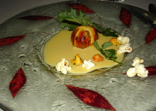 Si tratta del tartufo estivo cotto in crosta e servito su un coulis di mais tartufato, qualche pop corn croccantissimo, qualche fogliolina di un erba della famiglia delle rosacee , la “pimprenelle” , alcuni funghi crudi ( girolles ) ed infine una vinaigrette all’aceto bianco tartufato. Piatto stordente e appagante nello stesso tempo, servito, se richiesto , con un opportuno calice di Champagne aromatizzato all’idromele di Tuber Melanosporum . Ma di questa cena se ne parlerà diffusamente altrove, qui andrei avanti con qualche altro flash back della grande cucina d’autore che si serve “solo” di verdure, legumi, cereali, radici, frutti , con l’ausilio di condimenti o ingredienti quali le uova o di derivati del latte, ma spesso neppure necessari a chiudere un cerchio gustativo già di per se stesso di grandissimo rilievo.