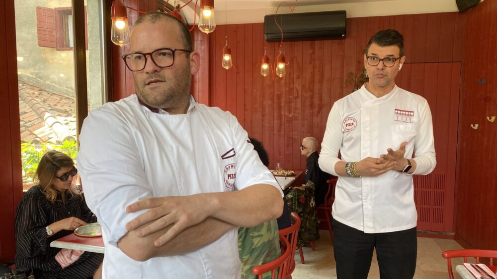 Ecco, alla Premiata Fabbrica Pizza di Bassano del Grappa i profumi iniziano da qui, dalla finestra. Dalla finestra più nascosta di questo bel locale dalle pareti vermiglie. Siamo a due passi dal ponte più amato d’Italia, quello progettato da Andrea Palladio e poi caro alle “penne nere”. Più volte distrutto da guerre e alluvioni e poi sempre ricostruito. Per rinascere come un’Araba Fenice. Alla Premiata Fabbrica Pizza un tempo c’era una premiata fabbrica di ceramica. Come a testimoniare che qui l’ingegno artigiano è di casa.  Più che fabbrica, questo è un laboratorio che ama il taglio sartoriale, dove ogni cosa sembra stata pensata per piacere prima a Massimo e a Michele che ai clienti che frequentano il locale. Inevitabilmente poi conquistati dalla passione dei due maestri artigiani della pizza, per i quali la qualità non è un valore negoziabile. Anzi…