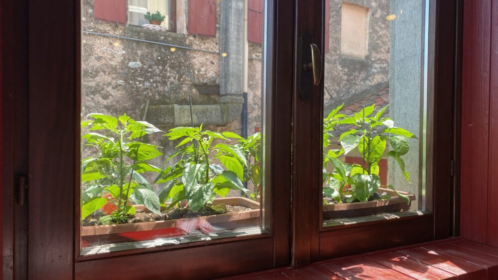 Dalla finestra si ammira un panorama incantevole sullo storico Ponte Vecchio,  o Ponte degli Alpini come i più lo conoscono. Sembra un poster, un’icona… se non fosse che il borbottio delle sempre increspate acque del Brenta riportasse alla realtà. Eppure lo sguardo poi, spostandosi sull’altra finestra, coglie anche un dettaglio delicato, lieve e per certi versi poetico: le piante di basilico che fanno bella mostra di sé in piccoli vasi sul davanzale…
