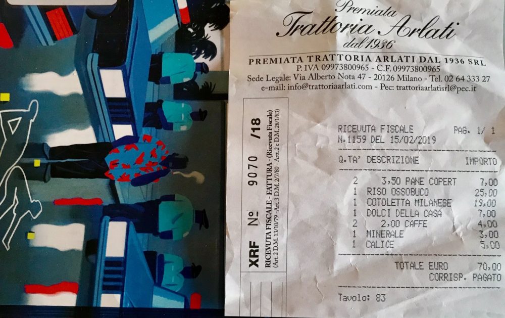 Premiata Trattoria Arlati, il conto, di rara onestà se parametrato al contesto, all’accoglienza e all’indubbia qualità del cibo