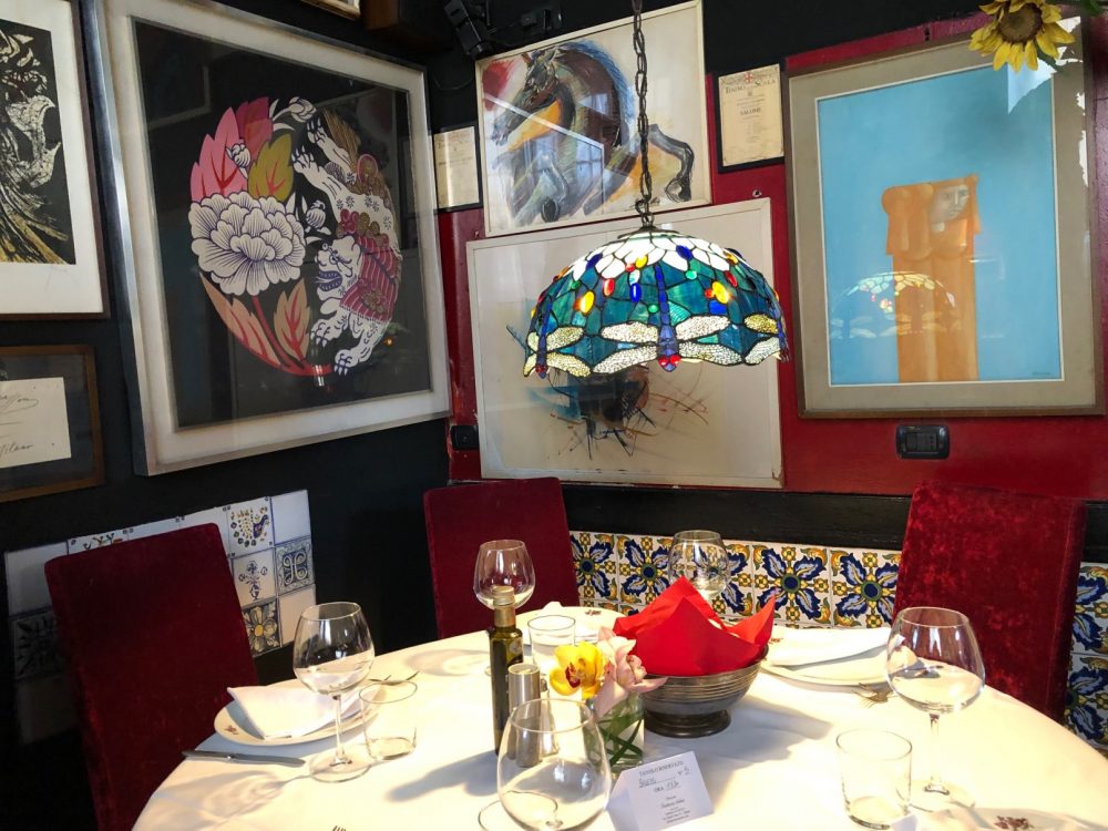 Questo è un luogo pieno di fascino, che potrebbe non piacere a chi ama i locali asettici e anestetizzanti, senza cuore pulsante, cari per principio (e non cari a me per principio) quelli dalle sedute scomode, col runner sul tavolo che sostituisce il tovagliato immacolato, luoghi “faticosi” nei quali è difficile fare una domanda al cameriere ed impensabile ottenere risposta.