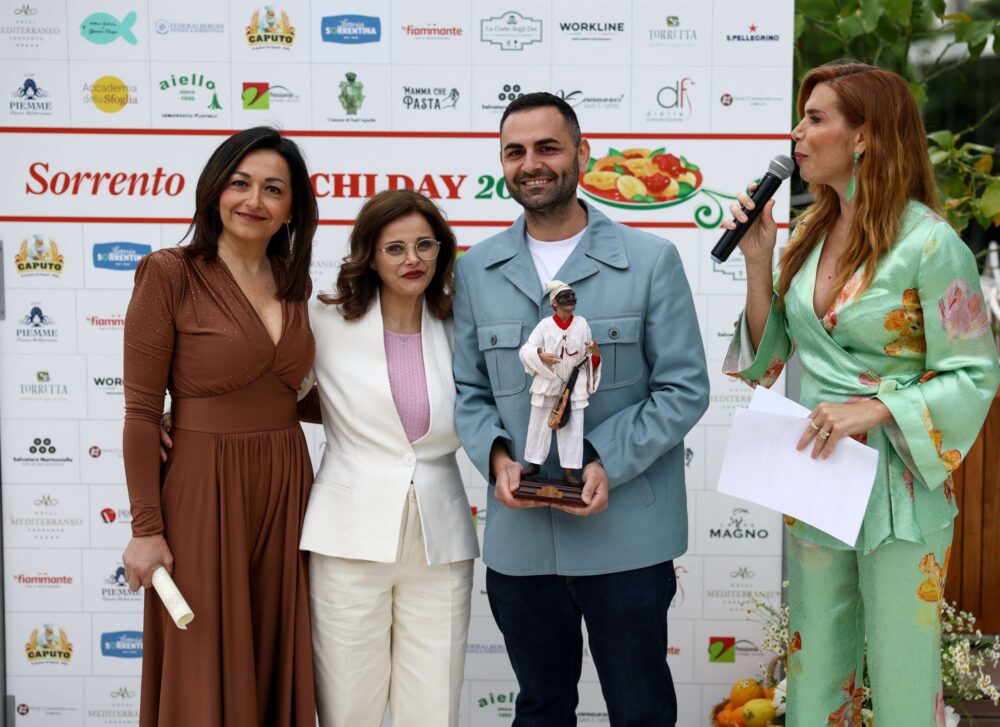 Il premio, un’opera dell’artigiano e scultore sorrentino Giuseppe Ercolano, è stato consegnato da AnnaMaria Lauritano, dell’azienda WorkLine, e da Nicoletta Gargiulo, del ristorante stellato O me o il mare di Gragnano, vincitrice dell’edizione 2025.