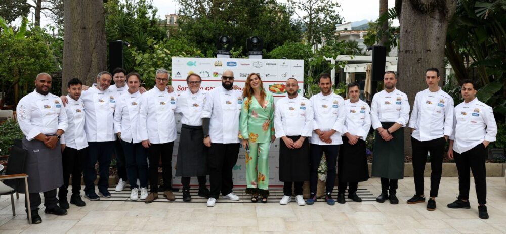 gemellaggio con l’Emilia Romagna; Nino Di Costanzo, del bistellato Danì Maison di Ischia ha presentato, assieme ad Antonio Autiero dello DesChevaliers di Napoli, gli Gnocchi alla carbonara con tartufo e nocciole; Peppe Aversa de Il Buco, 1 stella Michelin di Sorrento e Nicola Celentano, chef di casa, responsabile della cucina del Vesuvio Panoramic Restaurant, al 5° piano dell’hotel, hanno messo a punto un sorprendente Gnocco alla sorrentina: esplosione della tradizione; lo Gnocco di patate croccanti con stracotto di agnello, fonduta di Provolone del Monaco è stata la proposta di Luigi Lionetti, del Cora Bistrot, il ristorante dell’Ara Maris di Sorrento, in coppia con Alessandro Bisconti, della Terrazza Mediterraneo Italian Bistrot, di Sant’Agnello; Ciro Sicignano, chef del ristorante stellato Lorelei di Sorrento, in postazione con Giuseppe Vanacore del Ristorante Casa Scarica di Gragnano, ha messo a punto un Gnocco di scottona “alla pizzaiola” con salsa di fior di latte; una versione riformulata del classico Gnocco alla sorrentina, con pomodoro, mozzarella, basilico e parmigiano quella proposta da Antonino Montefusco di Terrazza Bosquet, stella Michelin del Grand Hotel Excelsior Vittoria, di Sorrento, coadiuvato dal suo sous chef, Fortunato Ranieri junior; Gnocco ripieno di mozzarella su crema di lardiata con cremoso di pecorino e croccante di pancetta è stata, invece, l’interpretazione presentata da Vincenzo Guarino de La Corte degli Dei di Palazzo Acampora di Agerola e di