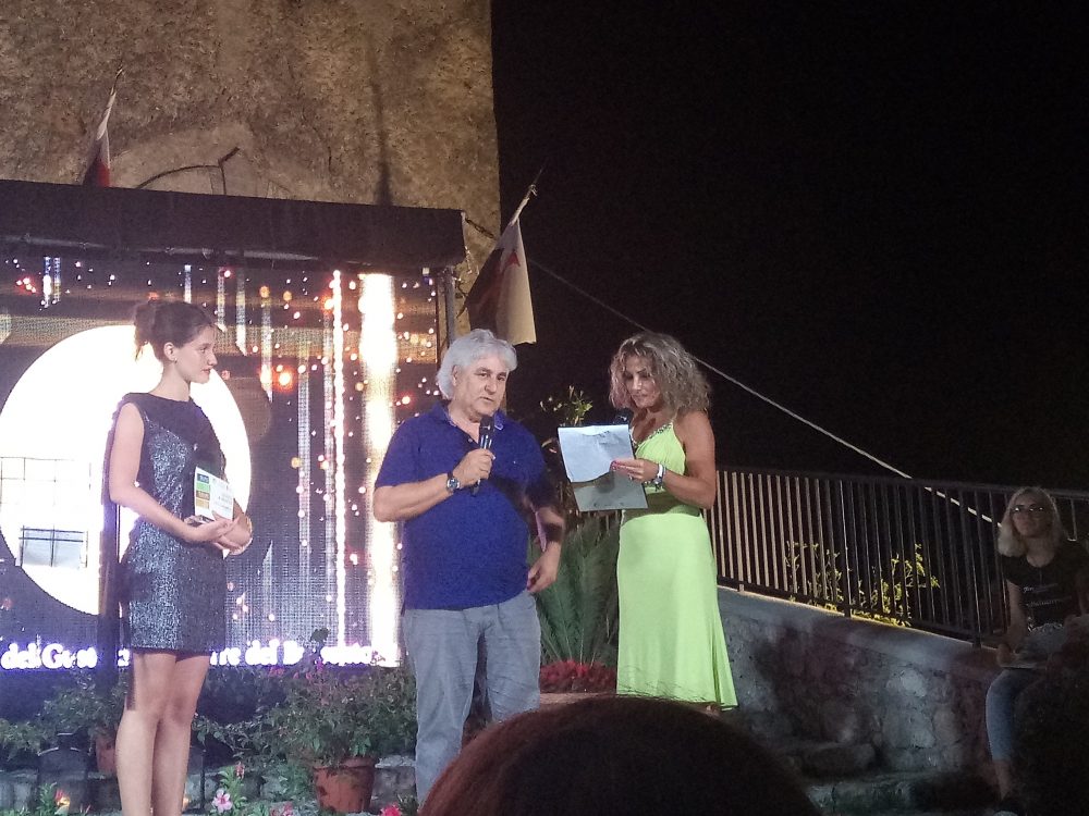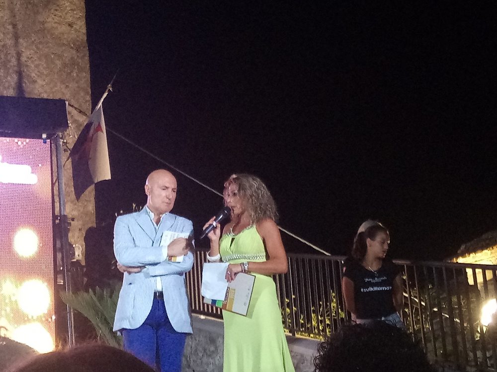 Il pubblico presente freme ed aspetta impaziente l’inizio della premiazione. A stemperare l’attesa ci pensa il maestro Leo Coppola, che con la sua chitarra disegna note musicali, affidandole all’etere. Poi finalmente s’incomincia. Sul palco appare in tutto il suo splendore Carmela Santi, vestita con uno sbracciato abito giallo che fa pendant con la riccioluta e lunga capigliatura, seguita a ruota dall’avv. Franco Maldonato che ha presieduto la giuria di quest’anno. Dopo i saluti di rito del sindaco di Torraca Francesco Bianco, incominciano a sfilare sul palco una ad una le otto celebrità, precedute da una clip che appare sull’ampio schermo, svelando così il loro importante percorso professionale.