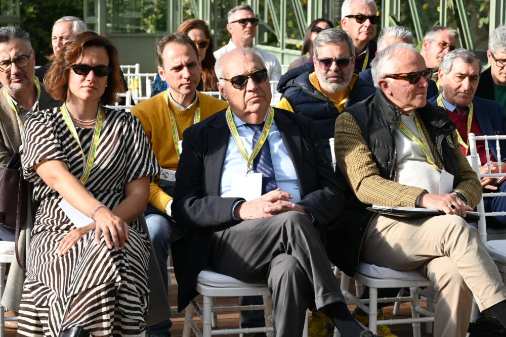 A Villa Zagara protagonisti i presidenti delle IGP italiane – Fabrizio Filippi Toscana, Maria Francesca di Martino Puglia, Massimino Magliocchi Calabria, Gaetano Agostini Marche, Sabino Basso Campania, David Granieri Lazio (olio di Roma) e il delegato Igp Sicilia Giosuè Catania – insieme agli organizzatori del Premio Olio delle Sirene e ai parlamentari Annarita Patriarca e Marco Cerreto.