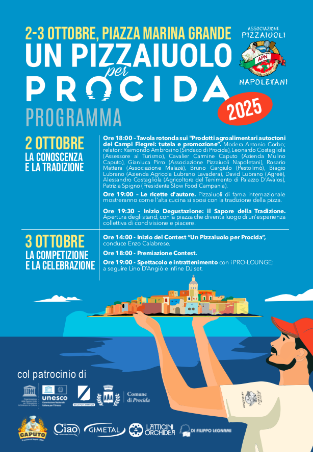 Grazie alla volontà della famiglia Caputo e dell’APN (Associazione Pizzaiuoli Napoletani), realizziamo un evento che rafforza concretamente l’offerta del turismo enogastronomico procidano” dichiara l’assessore Leonardo Costagliola.