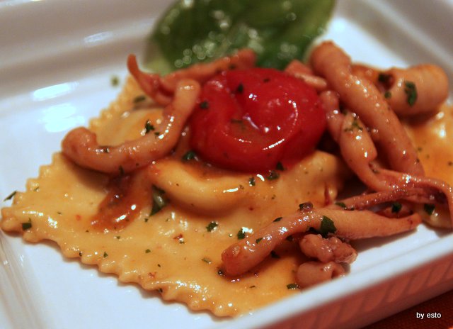 Profumati di limone sono i ravioli di ricotta e melanzane fra i quali stanno bene dei totanetti gustosi e teneri nonostante la cottura del ragù.
