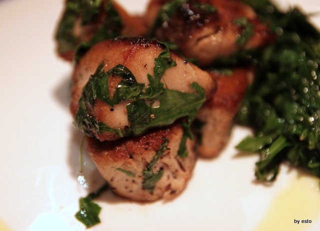 Il palamita giunge grigliato e accompagnato da rucola selvatica fritta che si dimostra simpatica e gustosa.
