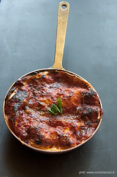 Sul menu è indicato come “Profumo di casa”, Lasagnetta al ragù napoletano e San Marzano. Sarebbe dovuto essere un piatto della degustazione primaverile ma ha riscosso tanta curiosità ed è piaciuto molto, accontentando i gusti di clienti italiani e stranieri e così la rivisitazione dello chef Fabrizio Mellino, 3 stelle Michelin dei Quattro Passi di Nerano, è rimasta tra le proposte estive del menu degustazione La Bella Stagione. E spopola anche sui social. Una riedizione moderna della lasagna del papà Tonino che fu dichiarato piatto dell’anno dalla Guida Espresso nel 2012.