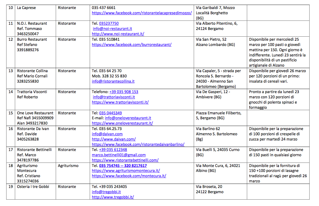 2 Elenco commercianti La gavetta del cuore aggiornato al 22 marzo h.19.00 23/3/2020 Torna a: Gruppo Ristoratori di Ascom Confcommercio Bergamo, Distretto del Commercio dei Colli e del Brembo presentano il Progetto: La Schiscetta Solidale | Ristoratori e negozi di vicinato della bergamasca a sostegno di medici e infermieri dell’ospedale di Ponte San Pietro e Zingonia Elenco commercianti La gavetta del cuore aggiornato al 22 marzo h.19.00← PrecedenteSuccessiva →