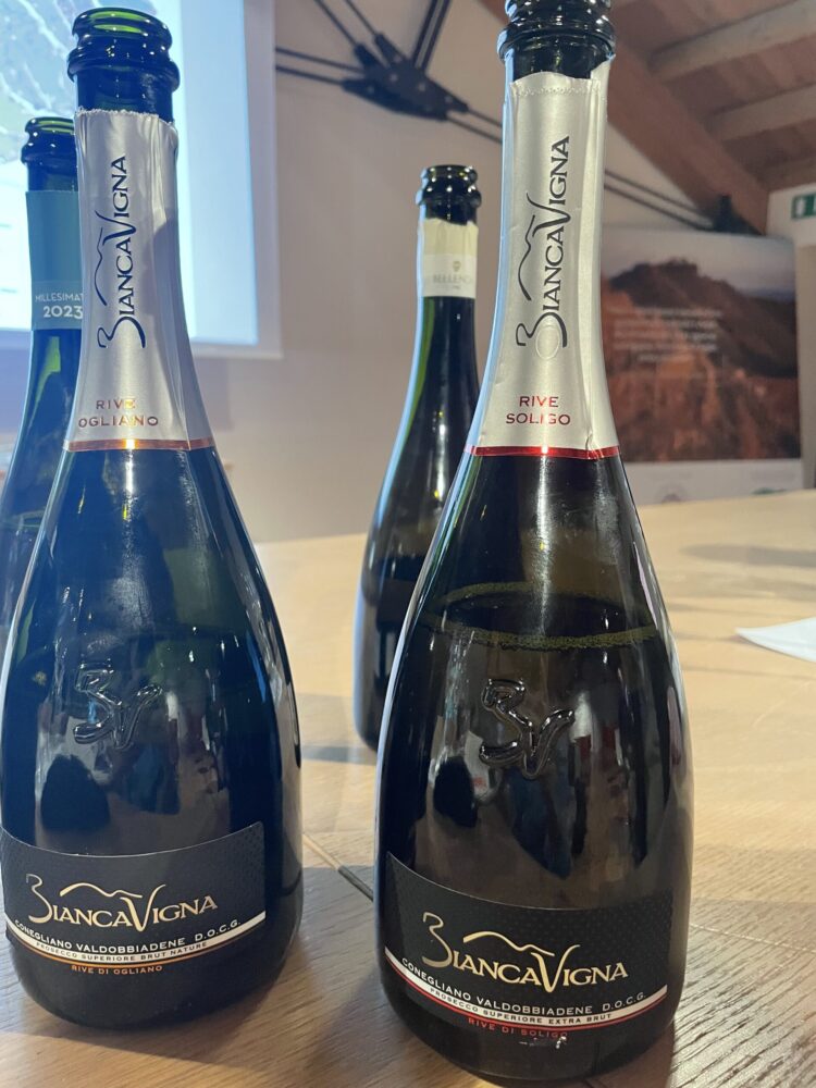 Con i vini di Biancavigna siamo ad Ogliano con l’Extra Brut Rive di Soligo 2018 ci troviamo dinanzi ad un’espressione adulta della Glera che cresce su suolo calcareo e roccioso, dal profumo veramente peculiare di mele e fiori. Anche l’azienda Bellenda si trova nella parte più orientale e il Valdobbiadene Rive di San Michele Anzolo nasce su terreno calcareo-argilloso, è un metodo charmat con più struttura, molto floreale, teso e leggero. Sempre di Bellenda San Fermo è un Brut (7g/l) che profuma di salvia e limone, mela e albicocca fresca, un’espressione assolutamente territoriale.
