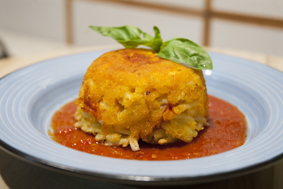 Proteino, perchè? Questo piatto nasce con quasi tutti gli ingredienti dell’arancino di riso siciliano, ad eccezione di quello “principe” che è il riso. E siccome ho usato della pasta di semola di grano duro, che ha un contenuto proteico maggiore del riso, ecco perchè “proteino”.