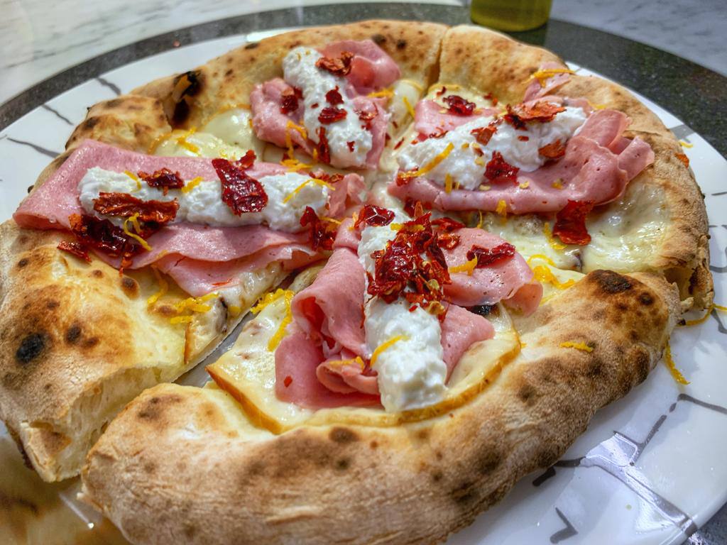 Proxima al San Barbato Resort (16) 30/11/2021 Torna a: Proxima di Franco Pepe al San Barbato Resort Proxima al San Barbato Resort – Pizza dedicata al territorio con mortadella artigianale lucana e peperoni cruschi← Precedente