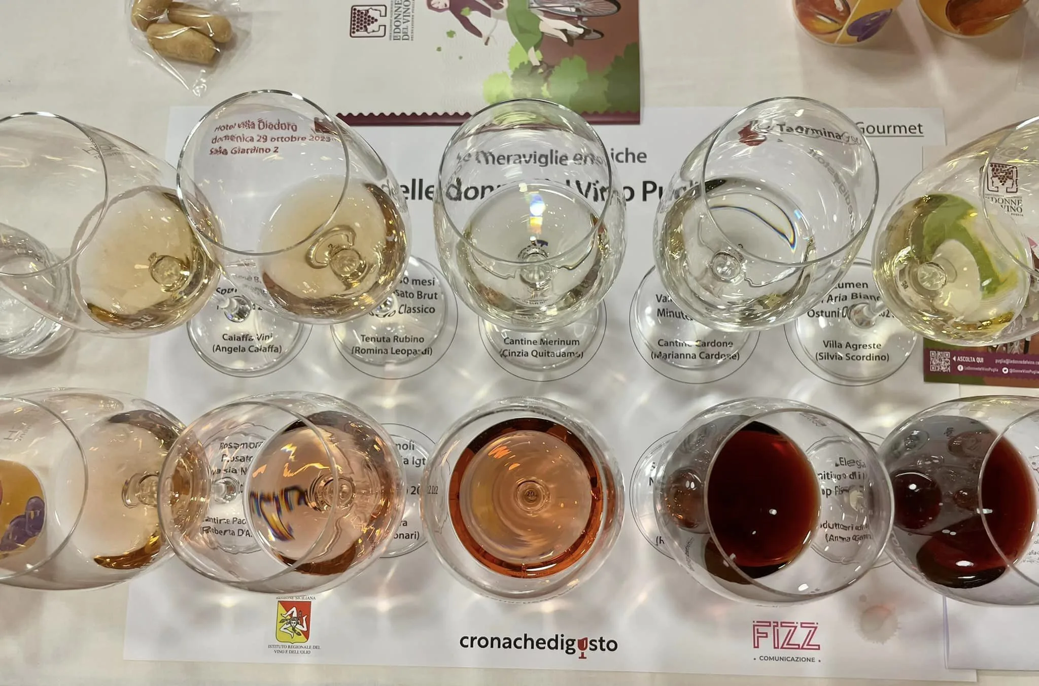 Degustazione Puglia, i bicchieri 4/11/2023 Torna a: Garantito Igp: i dieci volti della Puglia a Taormina Gourmet con le Donne del Vino I bicchieri della degustazione Puglia delle Donne del Vino← Precedente