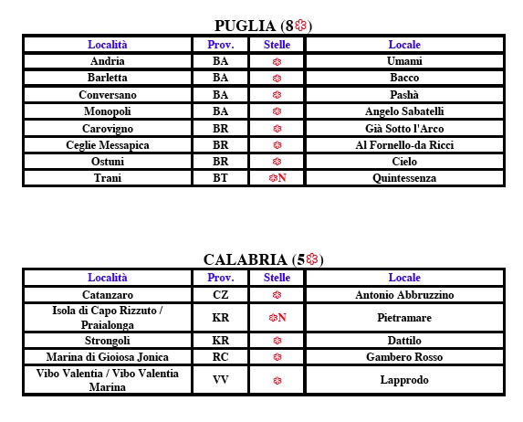 Puglia e Calabria: tutte le stelle Michelin 2017