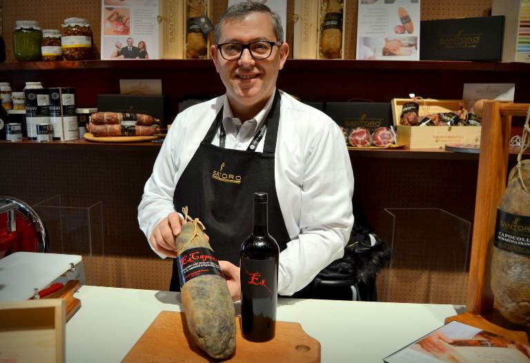 Uno stato dell’arte, quello appena descritto, a cui la Puglia non si sottrae affatto, proponendo il meglio delle sue produzioni d’eccellenza, durante i tre giorni della rassegna fiorentina. Qui, lungo le postazioni di Taste, accanto alle storiche aziende di sempre (Santoro, Muraglia, Paglione, Cavalieri, Petrilli), si affacciano nuove realtà, sino a raggiungere un totale di diciotto aziende presenti. Tra le novità più rilevanti, a mio avviso, vi è senza dubbio quella proposta dal Salumificio Santoro di Cisternino (Br), si tratta di “Es-capocollo”, uno straordinario salume preparato utilizzando, dopo la salatura delle carni, le vinacce del pluripremiato Primitivo di Manduria Es di Gianfranco Fino, incoronato quest’anno, miglior vino rosso d’Italia. In realtà, dopo averlo presentato ufficialmente lo scorso anno al Vinitaly, la vera novità consiste nel fatto che si è passati dai soli novantanove pezzi prodotti lo scorso anno, agli attuali quattrocentonovantanove pezzi prodotti quest’anno, rendendolo cosi di fatto, disponibile ad un pubblico più ampio.