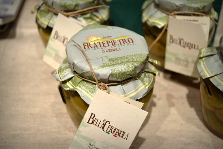 Altra presenza importante, vista la quantità del prodotto presentato, è quella della Azienda Agricola Fratepiero di Cerignola (Fg), specializzata nella produzione di olive da tavola “Bella di Cerignola”. Dimenticate tutte quelle che avete già gustato in passato, queste olive, sono tutta un’altra storia.