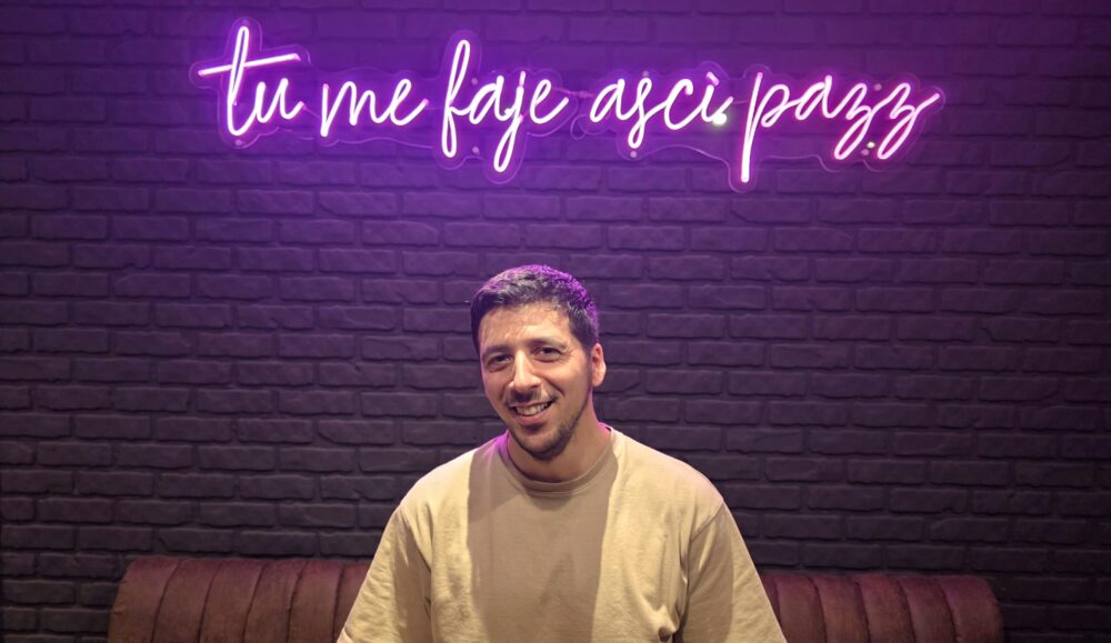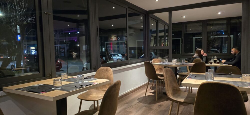 L’ambiente si presenta contemporaneo e ben arredato. Parquet, tavoli e sedute in legno chiaro contribuiscono a rendere la location moderna e calda. La scritta neon in dialetto napoletano alla parete a mattoncini scuri “tu me faje ascì pazz” (tu mi fai impazzire, ndr.) da quel tocco di colore che rende il locale anche un po’ pop. Senza dubbio fa capire le origini di Antonio ed anche la sua idea di pizza. Bella la cucina a vista con il forno in primissimo piano, il tutto protetto da una barriera trasparente a dividere cucina e sala.