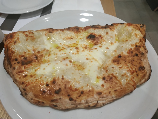 Da non perdere anche il suo calzone napoletano (8€), riadattato in stile ciociaro, con crema di ricotta di bufala, guanciale di maiale pesante della Fattoria Lauretti di Amaseno e provola affumicata Alveti&Camusi: delicato nel ripieno e gustoso in superficie, grazie alla provola aggiunta in cottura.
