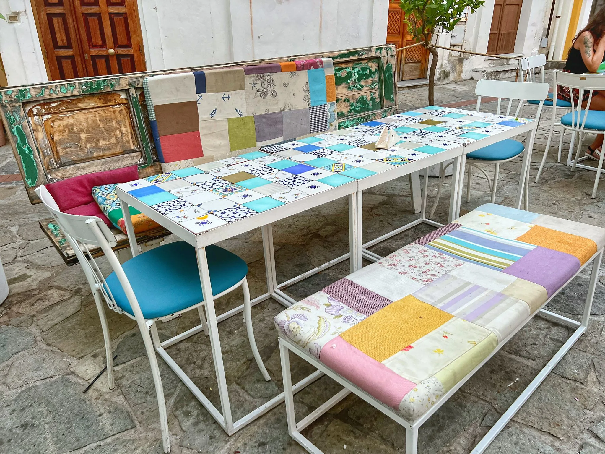 Quello che era un palazzo signorile del centro storico, ormai fatiscente, diventa così un piccolo regno di calda ospitalità, al pianto terra il Qcècè con i suoi allegri tavoli nella piazzetta e ai piani un lussuoso Bed and Breakfast dal nome “Suitetti”. Questi alloggi, caratterizzati da comfort e stile, offrono agli ospiti una fuga elegante e indimenticabile in uno dei luoghi più suggestivi della Calabria. Simona Eustorgio, vera anima del luogo, gestisce e si prende cura del gioiello che con il marito Albino ha creato. Oltre ad essere dal design interessante e ben studiato, SuiTetti è stato ristrutturato con la mentalità rivolta al voler recuperare e dare risalto alle cose positive. Un lavoro immane che ha visto riprendere pavimenti e antichi mobili, unendoli a pezzi moderni e originali. In soffitta era stata dimenticato un baule pieno zeppo di giornali: Albino li ha recuperati e lavorati facendoli diventare parte della parete del bagno del Qcècè.