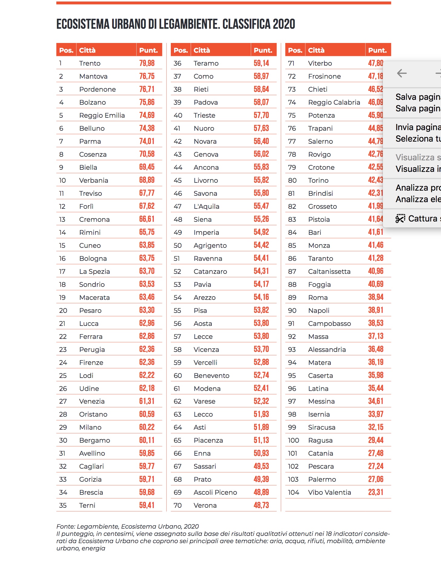 Ecosistema urbano citta green Lega Ambiente 10/11/2020 Torna a: Quali sono le città più green in Italia? Quali ancora schiave della logica del cemento e dello smog? Una classifica dei 104 capoluoghi con molte (amare) sorprese Successiva →