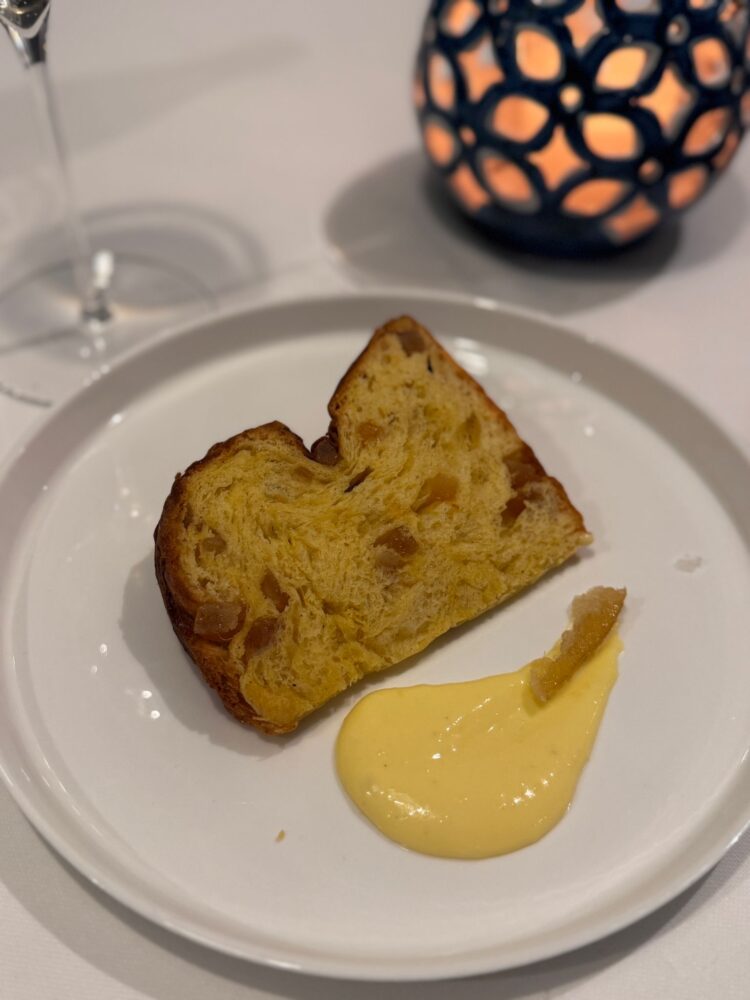 A chiudere la serata, la firma di una delle pasticcerie più iconiche della Costiera Amalfitana: Pansa. La loro celebre delizia al limone, tra i miei dolci preferiti in assoluto, ha offerto un finale fresco e luminoso, seguita dal Pan di Amalfi, panettone artigianale profumato alle scorzette candite della tenuta Villa Paradiso.