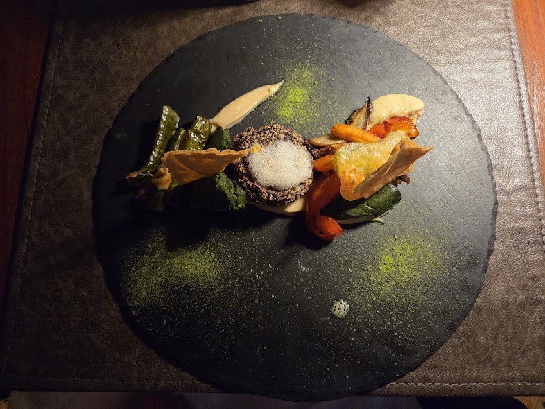 La cucina non cerca l’effetto immediato, ma la profondità. E soprattutto sceglie una strada rara: quella del racconto. L’esperienza comincia prima del piatto. La sala è calda, misurata, attraversata da una luce che invita al silenzio. Il camino acceso, il legno vivo, l’assenza di qualsiasi fretta creano una sospensione naturale. In questo spazio, la cena prende la forma di un piccolo teatro gastronomico. E il menu non viene semplicemente letto: viene interpretato.