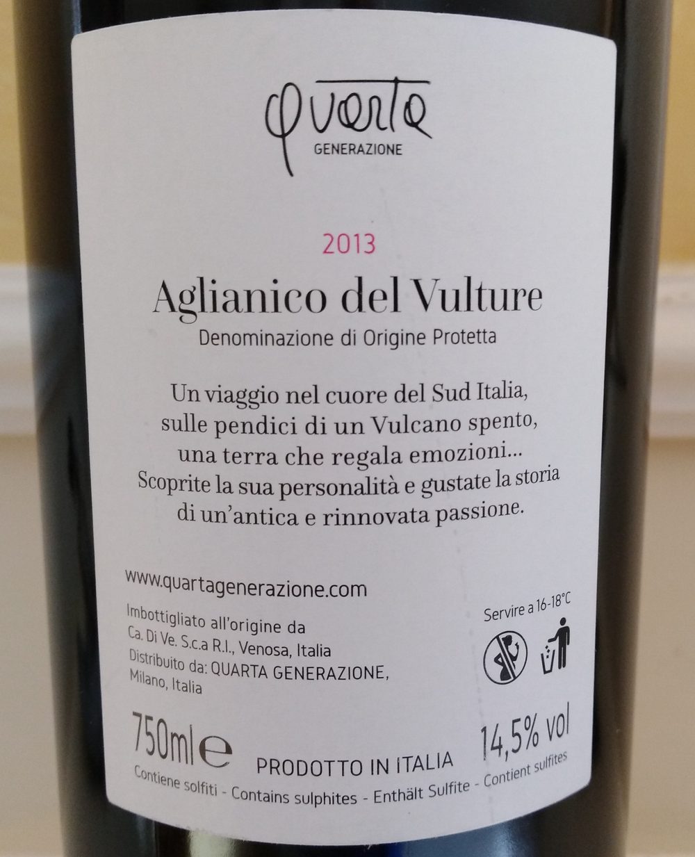 Controetichetta Quarta Generazione Aglianico del Vulture Dop 2013