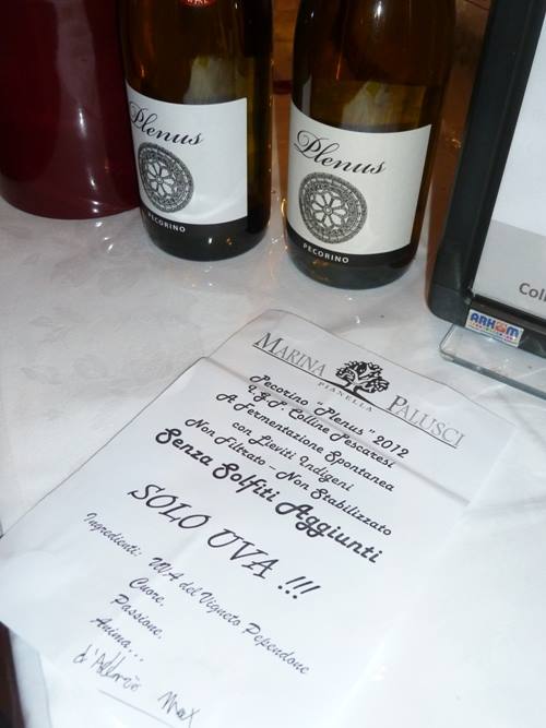 Piccola azienda che lavora in regime biologico e che dalla vendemmia 2012 propone il Pecorino senza solfiti aggiunti: versione giovanissima che al primo assaggio rivela un accenno di carbonica, ricco di note agrumate e di erbe aromatiche, alla beva ricco ma fresco, già godibile e con qualche potenziale evolutivo. Interessante il confronto col 2011, pure di buon livello in cui si apprezza la gestione della calda annata. Incoraggiante. 86/100