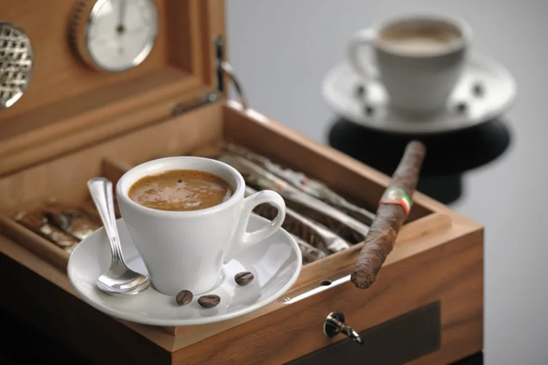 “All’inizio il sigaro, appena acceso, sprigiona calore elevato per via della combustione. Serve dunque raffreddare il palato, con una buona birra artigianale, per esempio, non eccessivamente luppolata, una bionda leggera. Poi la cenere aumenta e aumenta il “sapore” intenso del sigaro: per la parte centrale è consigliato un distillato, magari un rum di scuola inglese. Nel finale, poi, dove si è accumulato il condensato sul palato e si comincia a essere saturi e a desiderare di resettare le papille gustative, ecco una bevanda servita a temperatura bassa, uno Champagne millesimato, che consente di riassaporare anche le ultime fumate grazie all’effetto di pulizia delle bollicine e al bel contrasto di temperatura”.