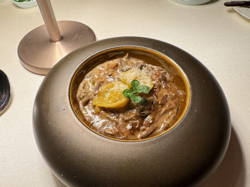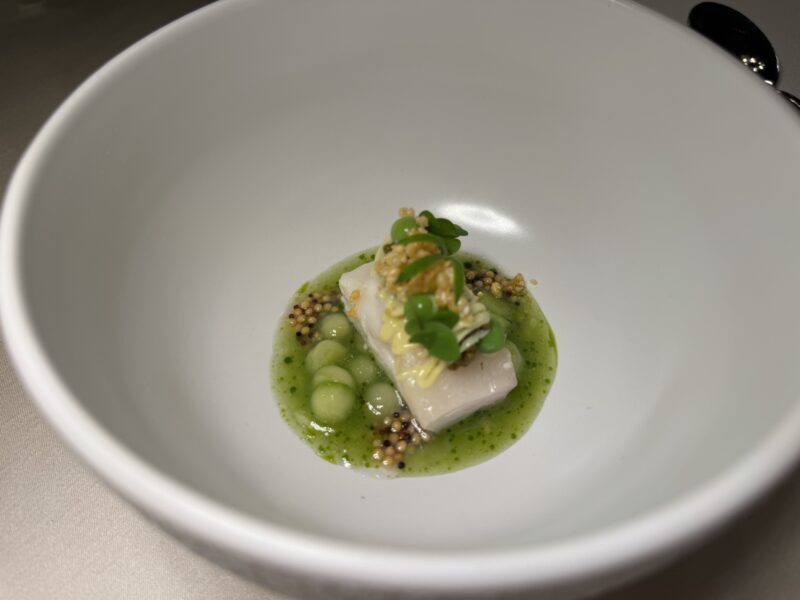 Il menù degustazione, che cambia periodicamente, offre un’esperienza che coinvolge tutti i sensi. I prezzi variano da 125€ a 155€, a seconda della lunghezza del percorso. Alcuni piatti simbolo dello chef includono: