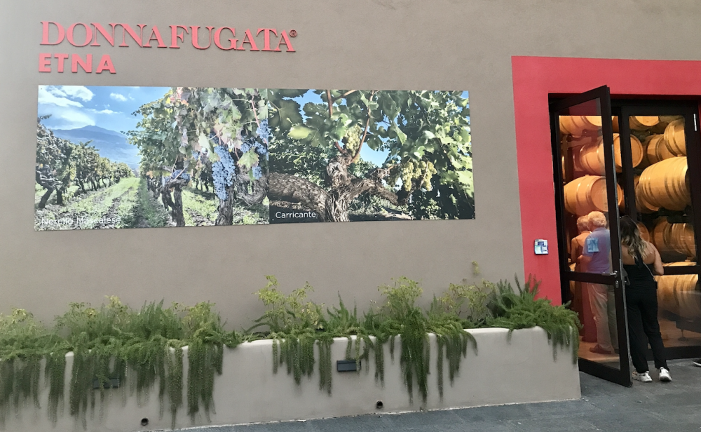 Il luogo è magico, abitato da molte vecchie vigne ad alberello prefillossera coltivate in anfiteatri naturali terrazzati circondati da sciare di lava e boschetti un po’ misteriosi. Donnafugata ti porta a vedere le vecchie vigne “restaurate” ed il vigneto “perpetuo”, magari anche altri li hanno, ma pochi sanno valorizzarli come loro. Percorrendo alcuni vecchi camminamenti in pietra tra le vigne, le rasole, che servivano per non sporcarsi troppo le scarpe di sabbia vulcanica, comprendi appieno l’unicità del contesto che poi ritrovi nei vini, tutti di ottima fattura come ti aspetti da Donnafugata, e in cui i Rallo hanno aggiunto magia a magia: le etichette d’autore firmate da Stefano Vitale che presentano, declinata in diverse versioni, la “dea Vulcano”, perché “l’Etna è donna” sottolinea Josè Rallo, affacciata sul Mediterraneo con lunghe, sensuali, volute di fumo nel vento.