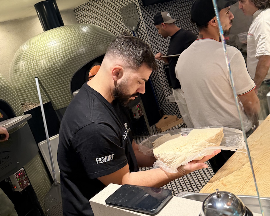Da quel dialogo emergeva con chiarezza una doppia direttrice lungo la quale intendeva muoversi. Da un lato, asse fondante del suo lavoro, la ricerca continua intesa come messa in discussione costante, come approfondimento tecnico su impasti, materie prime, specificità capaci di entrare in modo coerente nel prodotto finale, unitamente alla costruzione di un sistema di servizio impeccabile. Dall’altro l’espansione su scala del progetto, possibile solo attraverso l’investimento sulle persone, la costruzione di una squadra formata, consapevole, coinvolta, capace di interpretare e sostenere un’idea.